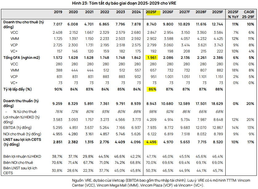 • Mở rộng trung tâm thương mại: VRE tiếp tục mở rộng mạng lưới, với các TTTM mới như VMM Ocean CityVMM Royal Island khai trương trong nửa cuối năm 2025, giúp lợi nhuận từ cho thuê tăng trưởng.