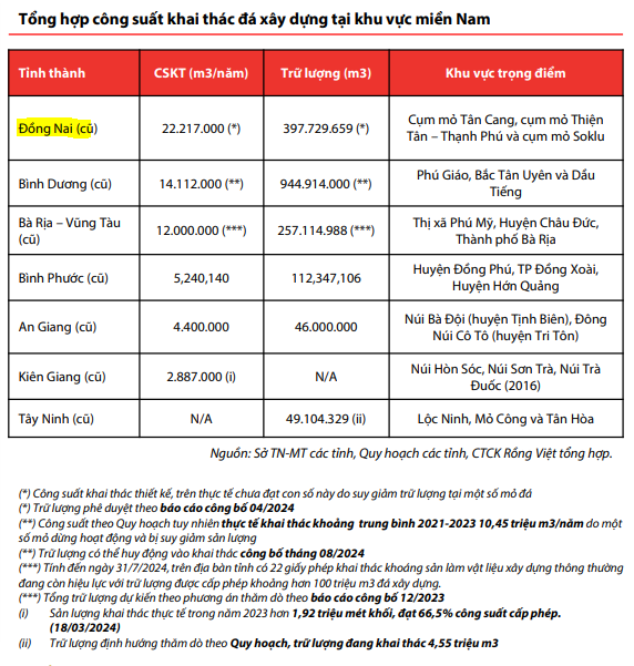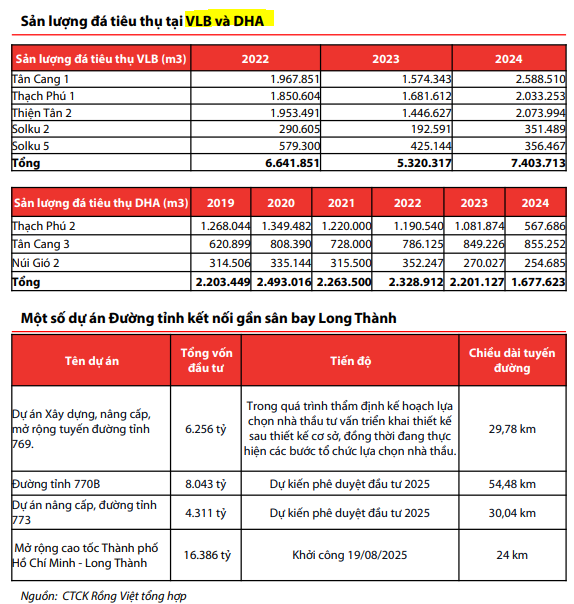 - Luận điểm đầu tư: Các doanh nghiệp này được kỳ vọng có kết quả kinh doanh tích cực trong giai đoạn 2025-2030 nhờ nhu cầu đá tại khu vực Nam Bộ tăng mạnh. Nhu cầu này đến từ việc đẩy nhanh tiến độ các dự án đầu tư công trọng điểm như cao tốc, Vành đai 4 TP. HCM, và các dự án kết nối sân bay Long Thành.
