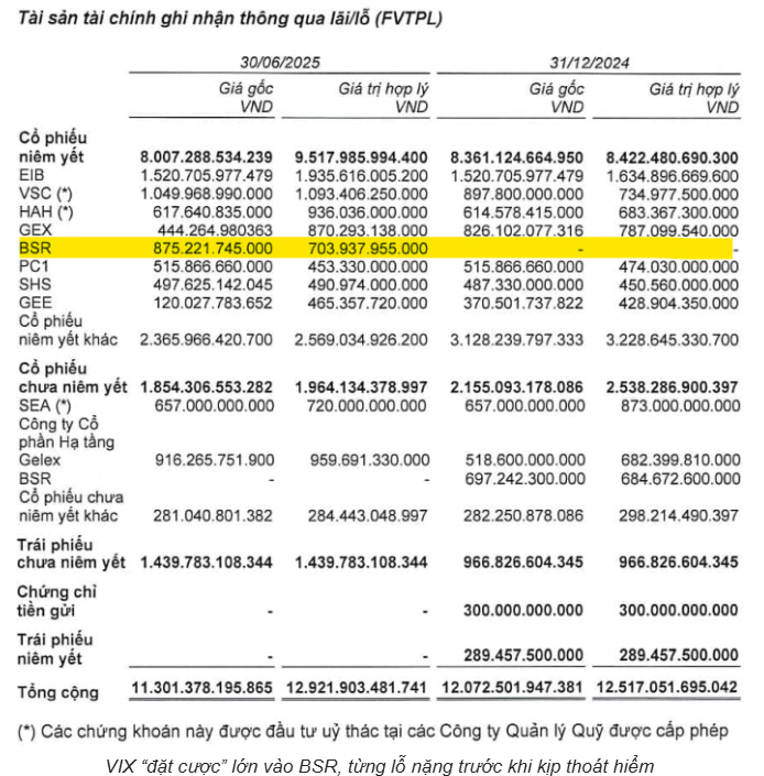 - Đầu tư lớn: VIX đã chi 875 tỷ đồng để nắm giữ 39.4 triệu cổ phiếu BSR vào đầu năm 2025. Khoản đầu tư này chiếm 1.27% vốn điều lệ của BSR.