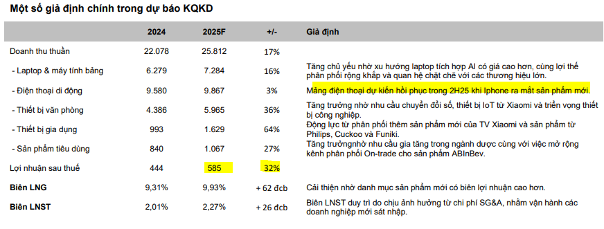 • Chuyển dịch cơ cấu sản phẩm: DGW đang tập trung vào các mảng có biên lợi nhuận tốt hơn như Laptop, Office Equipment (OE), Home Appliance (HA) và Consumer Goods (CG). Sự tăng trưởng của các mảng này đủ để bù đắp chi phí khuyến mãi và bán hàng, ngay cả khi nhu cầu thị trường chỉ cải thiện ở mức vừa phải.