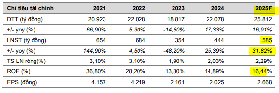 Dự phóng 2025 – Doanh thu: 24,591 tỷ đồng (+11.4% svck).