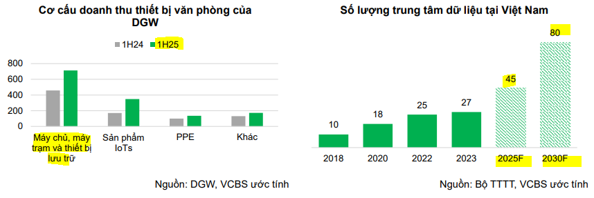 Xu hướng này không chỉ thúc đẩy đầu tư vào trung tâm dữ liệu mà còn làm tăng nhu cầu về thiết bị văn phòng hiện đại như hệ thống CNTT, máy in, thiết bị mạng và giải pháp an ninh. Trong bối cảnh cạnh tranh gay gắt và yêu cầu hiệu suất cao, công nghệ trở thành yếu tố cốt lõi, tạo cơ hội cho DGW gia tăng doanh thu từ máy chủ, máy trạm và thiết bị lưu trữ.