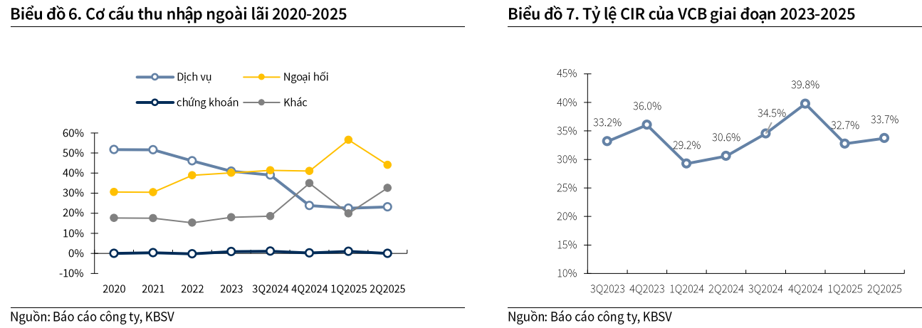 Ở mảng phi tín dụng, lợi nhuận ngoại hối tiếp tục là “mỏ neo” với biên lợi nhuận cao, trong khi dịch vụ chịu tác động nhất thời từ các chính sách miễn, giảm phí nhằm thúc đẩy hệ sinh thái khách hàng.