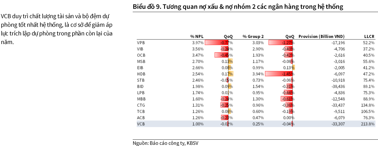 VCB đang thuộc nhóm “đầu bảng” về chất lượng tài sản.