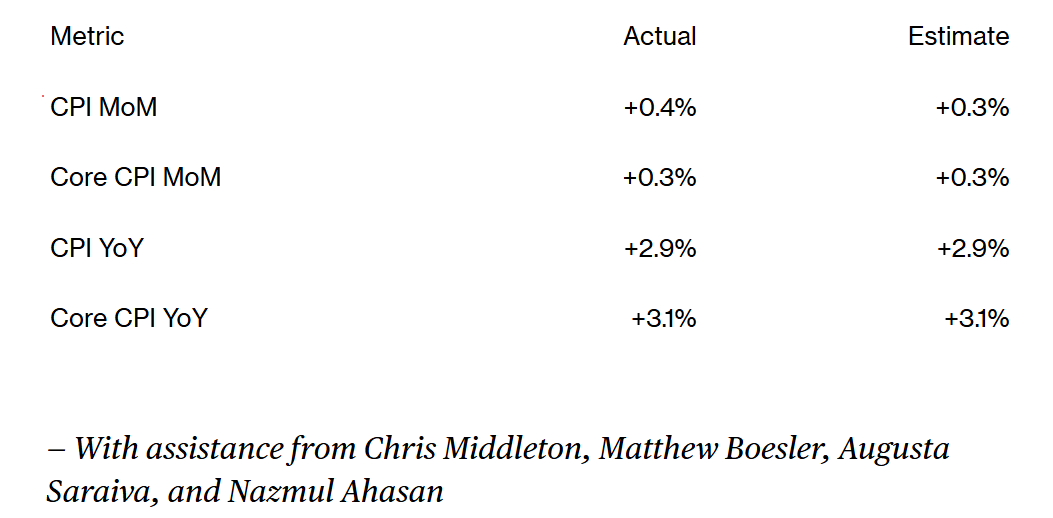 CPI không bao gồm thực phẩm và năng lượng tăng 0.3%, phù hợp với dự báo và tương đương với tháng trước.Hai biện pháp cơ bản quan trọng về lạm phát cho thấy áp lực giá cả đã chậm lại, với giá hàng hóa cốt lõi không bao gồm xe mới và xe đã qua sử dụng tăng 0.13% và chi phí dịch vụ siêu cốt lõi tăng 0.33%.
