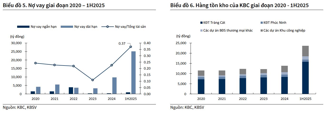 Tổng nợ vay của KBC tính đến cuối quý 2/2025 đã tăng lên 26,074 tỷ đồng, kéo theo tỷ lệ đòn bẩy tài chính lên 37%. Điều này có thể làm gia tăng chi phí vốn và rủi ro thanh khoản.