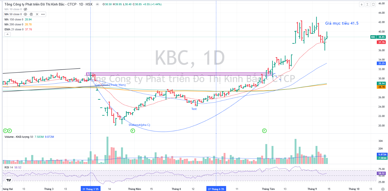 Vietcap (11.8.2025) điều chỉnh tăng 15% giá mục tiêu lên mức 41,500 đồng/cổ phiếu và duy trì khuyến nghị MUA đối với Tổng Công ty Phát triển Đô thị Kinh Bắc (KBC).