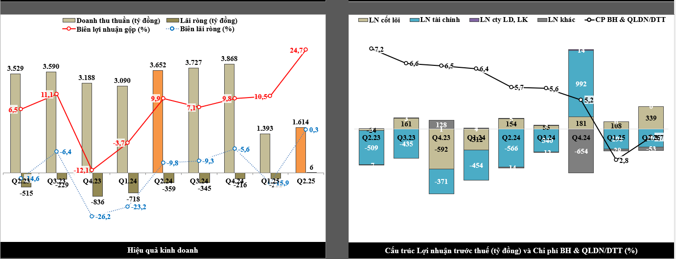 Lợi nhuận sau thuế đạt 6 tỷ đồng, đánh dấu bước ngoặt thoát lỗ sau nhiều quý âm (so với mức lỗ 344 tỷ đồng cùng kỳ 2024).