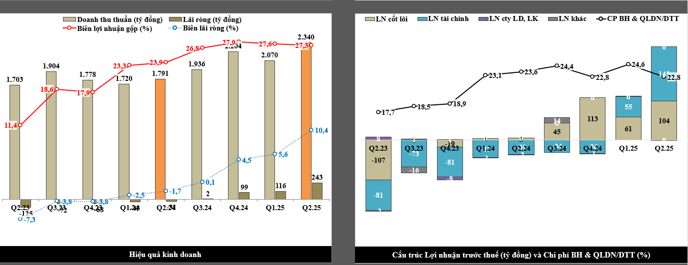 • Đáng chú ý, chỉ trong 2 quý đầu năm 2025, lợi nhuận đã vượt kế hoạch cả năm, cho thấy khả năng bứt phá mạnh mẽ.