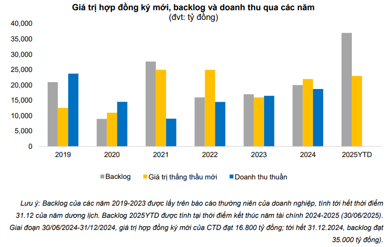 Tính đến cuối niên độ 30 ⁄ 6 ⁄ 2025, CTD nắm trong tay sổ việc trị giá 35,353 tỷ đồng – mức cao nhất lịch sử và gấp 1.4 lần doanh thu dự phóng FY 2025-2026, và gấp hơn 1.5 lần doanh thu thuần của năm 2024.