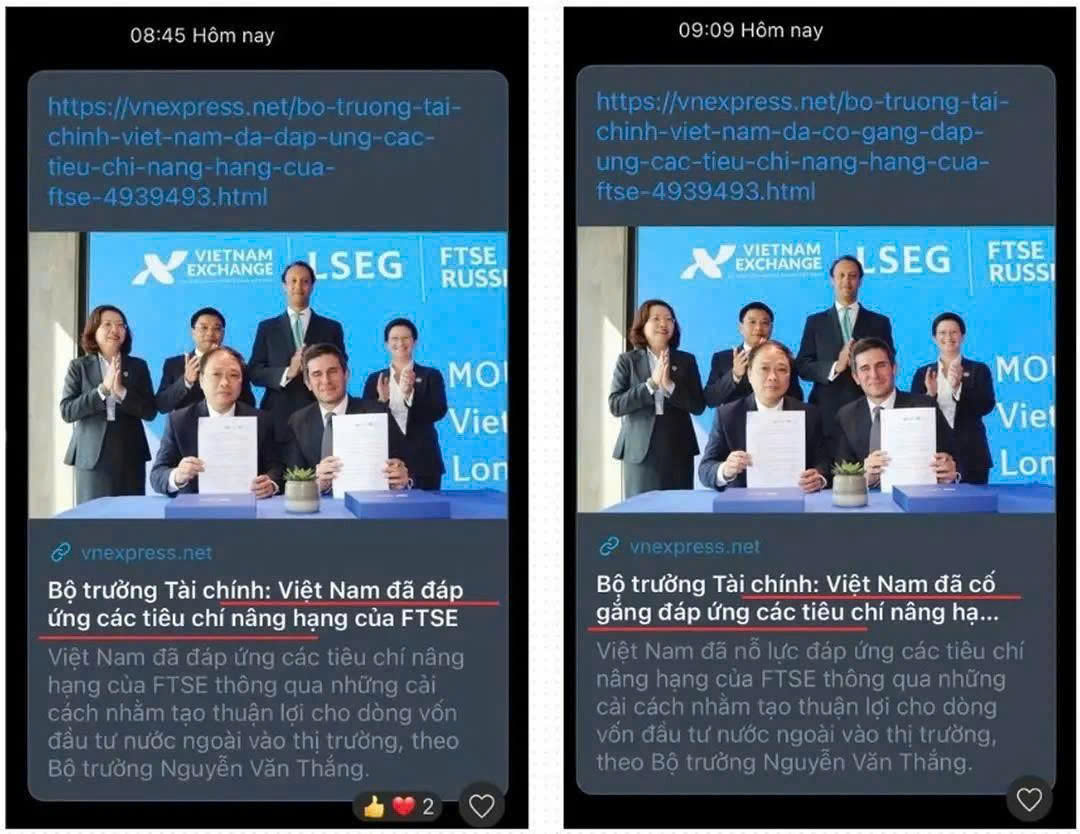 Nhìn sang kinh nghiệm quốc tế, các thị trường như UAE, Qatar (2014) hay Pakistan (2017) đều chứng kiến hiện tượng “mua tin đồn, bán sự thật”: giá tăng mạnh trước sự kiện rồi điều chỉnh sâu ngay sau đó. Việt Nam đã “chạy trước” đến +55% từ đầu năm, do đó nguy cơ điều chỉnh sau tin chính thức thậm chí còn lớn hơn. Điều quan trọng nhất là sau khi “điểm danh” hai rào cản FOL và DvP, nhà đầu tư cần theo dõi sát số liệu thanh khoản hàng ngày và thông báo chính thức từ MSCI/FTSE.
