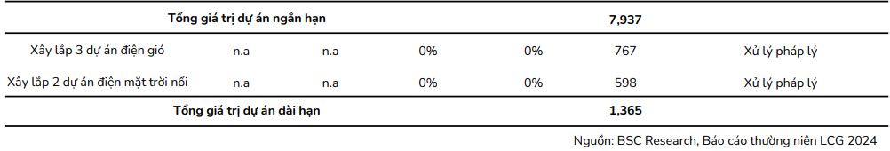 Ngoài mảng BOT truyền thống, LCG đã trúng thầu ba dự án điện gió trị giá 767 tỷ VNĐ và hai dự án điện mặt trời nổi tổng 598 tỷ VNĐ.