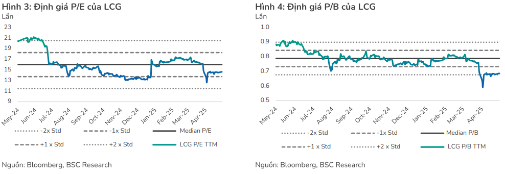Theo Báo cáo cập nhật tháng 9/2025 của BSC, CTCP Licogi 16 (LCG) có ba “nguồn thu” quan trọng mang tới sức bật lợi nhuận cho 2 năm tới. Bên cạnh đó, với EPS forward 712 đồng, P/E 13x và P/B 0.7x, LCG đang giao dịch ở mức hấp dẫn so với nhóm nhà thầu hạ tầng. BSC định giá mục tiêu 12,700 đồng/cp và khuyến nghị “Theo dõi” với dư địa tăng giá khoảng 2% so với giá 12,450 đồng ngày 17/9/2025.