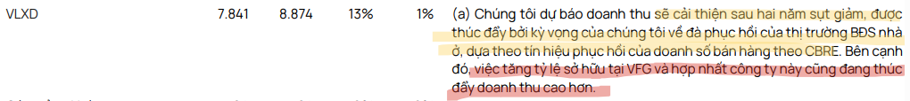Tháng 6/2025, Viglacera hoàn tất mua lại 100% vốn Công ty Kính nổi Việt Nam (VFG), qua đó nâng thị phần kính xây dựng từ 30% lên 40% và bổ sung khoảng 1,200 tỷ đồng doanh thu mỗi năm. Vietcap đã tăng giả định tốc độ tăng trưởng dài hạn của mảng VLXD lên 3% (từ 1 %) dựa trên kỳ vọng phục hồi ngành và việc mở rộng thị phần này.