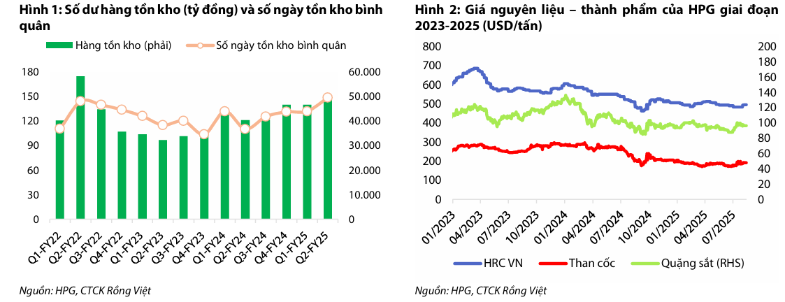 Đáng chú ý, sản lượng tiêu thụ thép xây dựng vẫn ổn định, trong khi sản lượng HRC tăng trưởng mạnh mẽ sau khi nhà máy DQ2 đi vào hoạt động với hiệu suất khoảng 70%. VDSC cũng lưu ý rằng giá trị hàng tồn kho của HPG vẫn ở mức cao, cho thấy công ty đang tích trữ nguyên liệu để chuẩn bị cho hoạt động của nhà máy DQ2 khi cả hai giai đoạn đi vào vận hành ổn định.