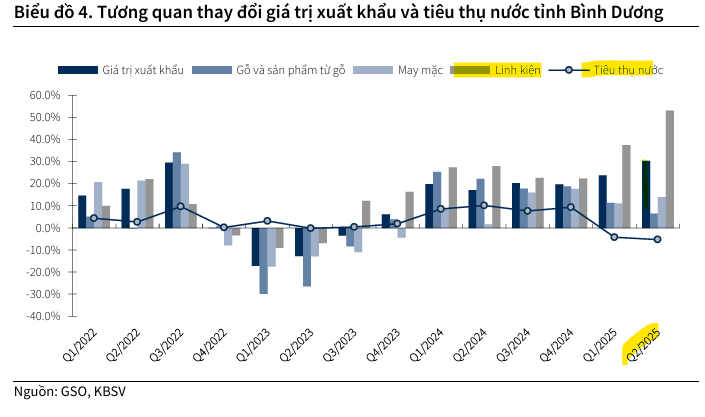 Sau thông tin về thuế xuất khẩu sang Mỹ, các mặt hàng chủ lực của Bình Dương tăng mạnh để đẩy nhanh giao hàng, nhưng tiêu thụ nước sạch lại giảm hai quý liên tiếp do dư địa tăng trưởng hạn chế, công suất nhà máy đã tối đa và cơ cấu xuất khẩu chuyển sang nhóm tiêu thụ ít nước.