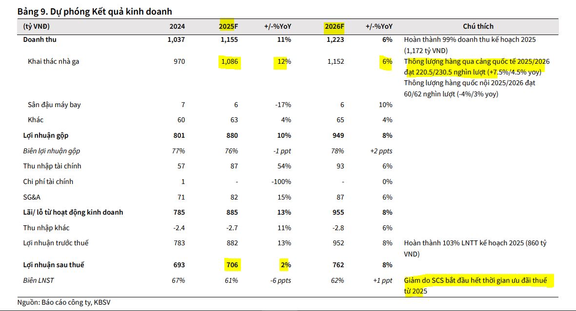 KBSV (22.9.2025) đưa ra khuyến nghị MUA đối với cổ phiếu SCS, với giá mục tiêu 71,000 VND/cổ phiếu. Mức giá này được xác định trong kịch bản cơ sở (giả định SCS không trúng thầu tại Long Thành), cho thấy tiềm năng sinh lời 17.3%. Nếu kịch bản SCS tham gia Long Thành xảy ra, giá cổ phiếu có thể được tái định giá ở mức cao hơn.