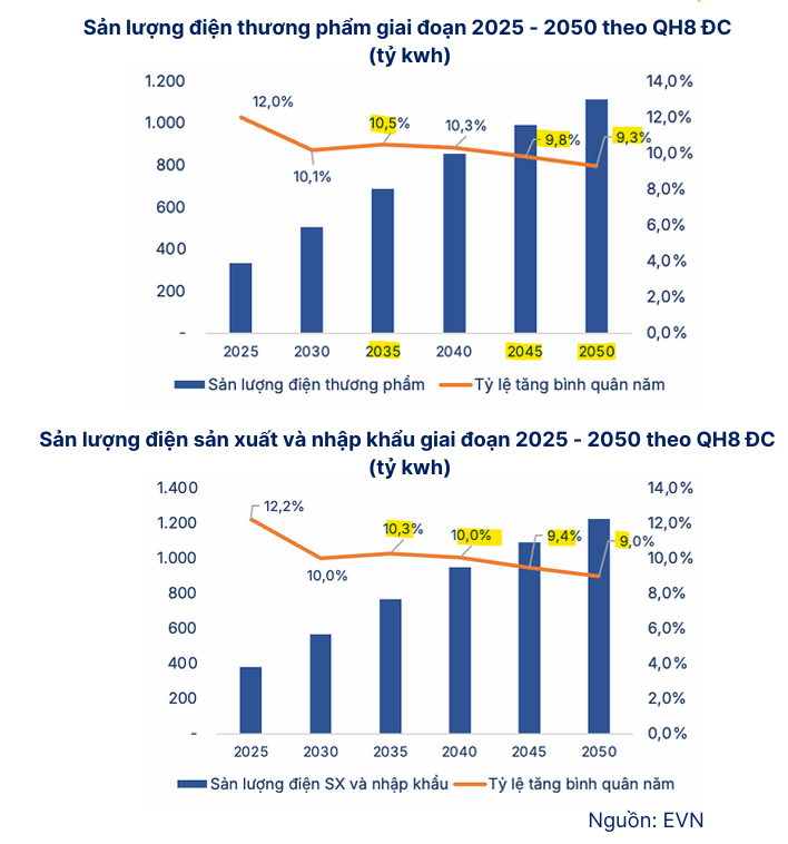 QHĐ VIII điều chỉnh đã được ban hành vào ngày 15/04/2025, các chỉ số nhìn chung đều được điều chỉnh cao hơn so với QHĐ VIII cho thấy nhu cầu điện là rất cao trong bối cảnh mục tiêu tăng trưởng kinh tế 10%/năm đến 2030 của Chính phủ đặt ra.