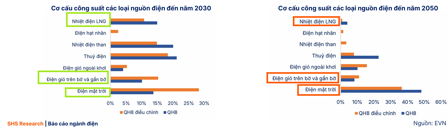 SHS đánh giá Nghị quyết này cùng với QHĐ8 không chỉ đặt ra các mục tiêu cụ thể về cơ cấu công suất (tăng tỷ trọng điện gió, điện mặt trời, điện khí LNG) mà còn nhấn mạnh nhu cầu cải cách sâu rộng các chính sách và cơ chế thị trường.