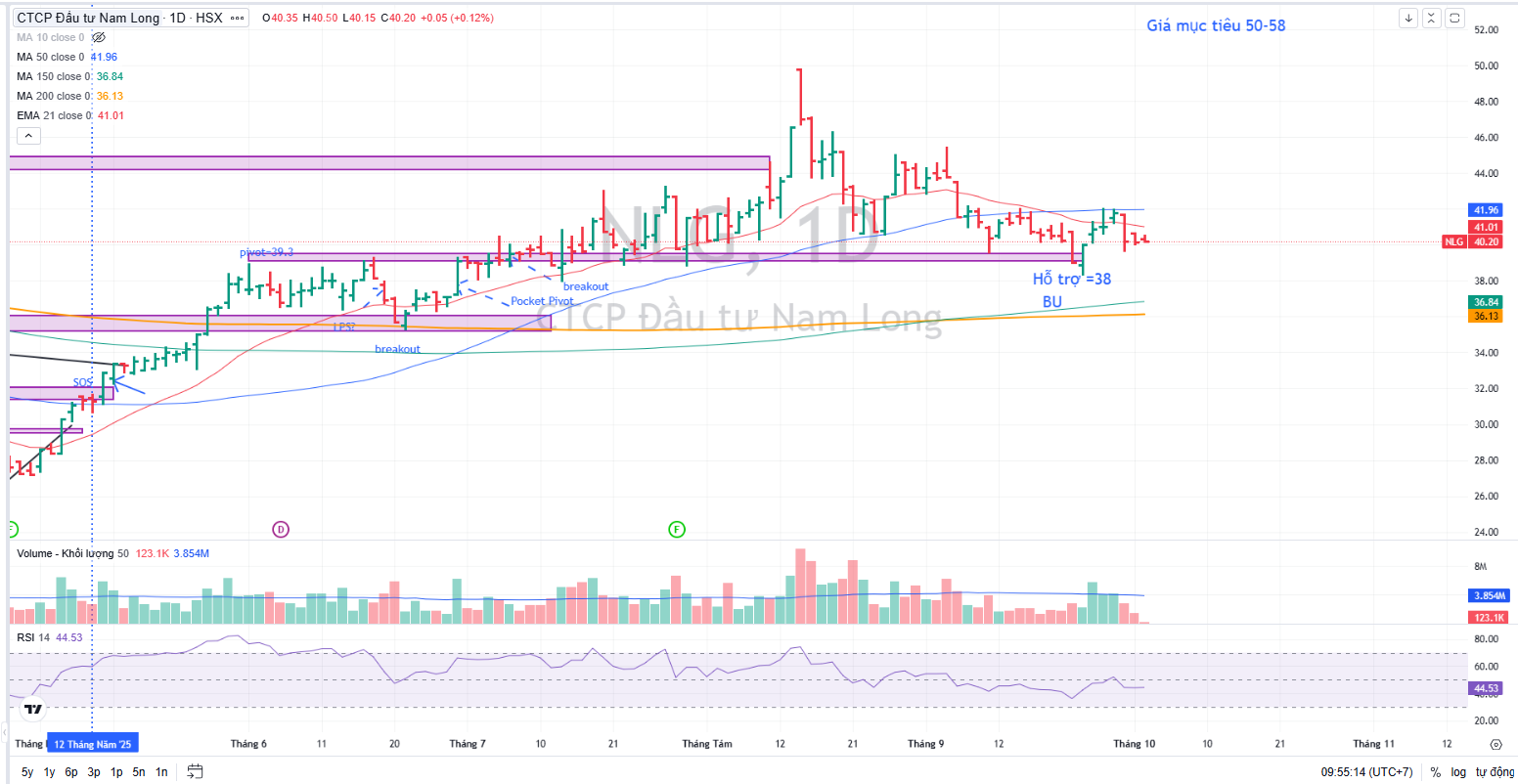 Elibook Team khuyến nghị mua NLG tại vùng hỗ trợ giá 38,000 đồng.