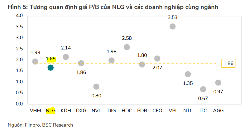 NLG hiện đang giao dịch tại mức P/B forward , thấp hơn mức trung bình ngành hiện tại là .
