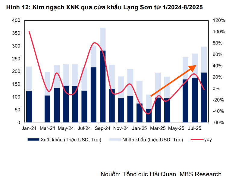 Sự bứt phá này chủ yếu nhờ vào việc phát triển các dự án hạ tầng logistics trọng điểm, đặc biệt là Dự án Công viên Logistics Lạng Sơn. Sau khi hoàn thiện các giấy phép cần thiết, dự án này sẽ giúp gia tăng công suất khai thác, kết hợp với sự phục hồi của hoạt động xuất nhập khẩu qua khu vực Lạng Sơn khi nhu cầu nhập khẩu nông sản gia tăng. Mặc dù dự án này chưa đóng góp nhiều trong năm 2025, nhưng MBS kỳ vọng doanh thu và lợi nhuận sẽ cải thiện và tăng mạnh trong năm 2026 khi các giấy phép cần thiết được hoàn thiện.