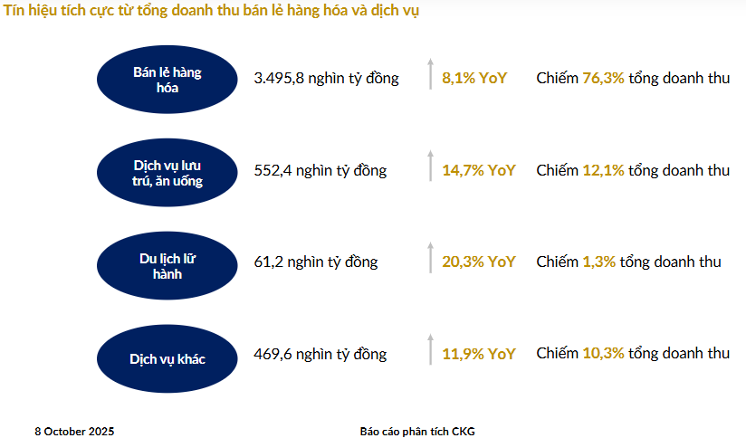 Theo CKG, cơ cấu doanh thu tám tháng đầu năm 2025 gồm: