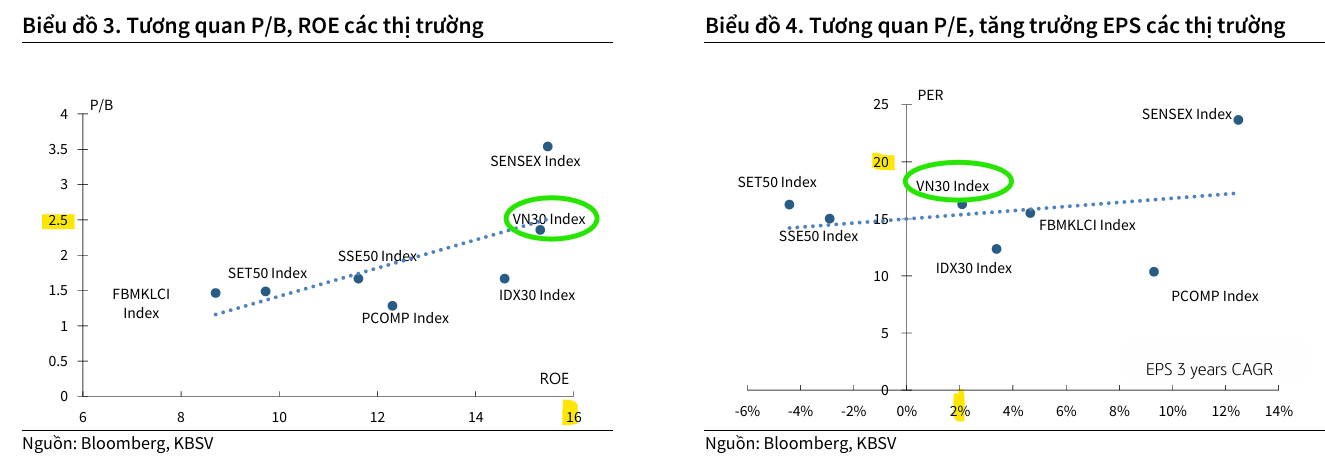 Vùng điểm 1,814 tương đương với mức P/E mục tiêu là 16.7 lần (theo cách tính của Bloomberg). Mức định giá này tương đương với mức P/E bình quân 5 năm gần nhất và nhỉnh hơn mức P/E hiện tại là 16.3 lần. KBSV nhận định đây là mức định giá hợp lý cho TTCK Việt Nam, đặc biệt trong bối cảnh thị trường đang hội tụ nhiều động lực hỗ trợ mạnh mẽ.