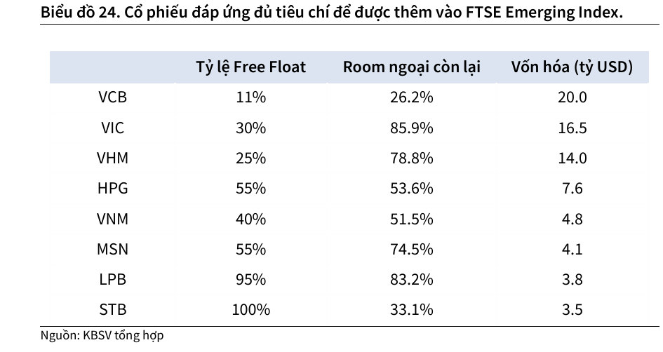 Cuối cùng, kỳ vọng về việc nâng hạng thị trường chứng khoán tiếp tục là một động lực lớn, đặc biệt là việc Việt Nam được đưa vào chỉ số FTSE Secondary Emerging Market, dự kiến kích hoạt khoảng 0.5 đến 1 tỷ USD vốn từ các quỹ thụ động.
