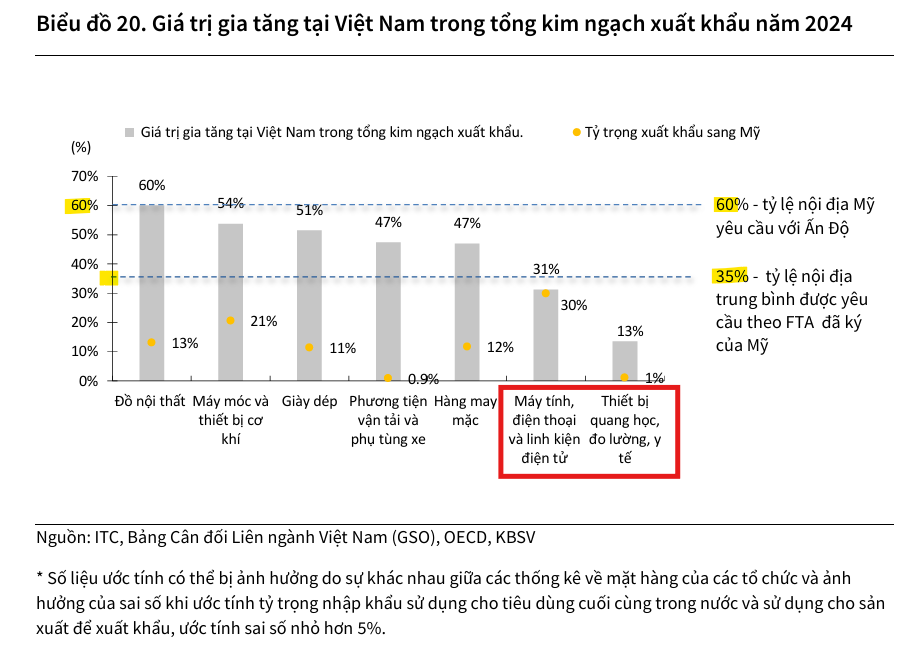 Đối với rủi ro thuế “chuyển tiếp,” KBSV đã lùi thời điểm lo ngại sang năm 2026 thay vì cuối năm nay. Lý do là (1) nước Mỹ muốn tránh gây thêm áp lực lên nền kinh tế vốn đang chậm lại, khi thuế nhập khẩu bình quân đã tăng lên 16.3% và PCE dự báo đạt 3.2%; (2) các cuộc đàm phán về tỷ lệ nội địa hóa với đối tác như Ấn Độ, Thái Lan vẫn chưa đạt kết quả, khiến việc triển khai chính sách chưa khả thi.