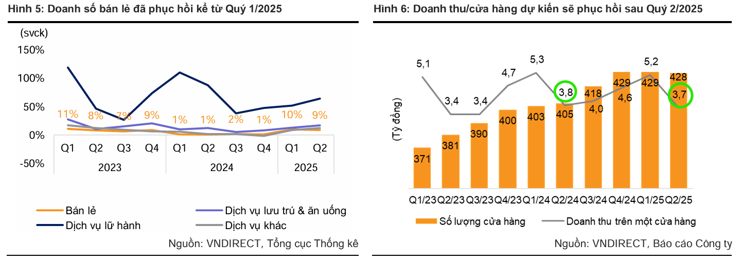 Riêng tháng 8/2025, chi tiêu không thiết yếu đã có tín hiệu phục hồi rõ rệt. Với vị thế là nhà bán lẻ trang sức lớn nhất, PNJ kỳ vọng doanh số trên mỗi cửa hàng sẽ phục hồi trở lại ngưỡng 3.7–5.2 tỷ đồng/tháng từ quý 2/2025, sau khi từng giảm xuống 3.4 tỷ đồng.