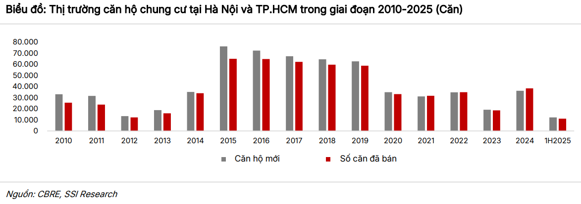 Về phía cầu, SSI Research kỳ vọng nhu cầu mua nhà ở thực sẽ tăng lên nhờ tâm lý thị trường cải thiện và chính sách tín dụng ổn định. Tỷ lệ hấp thụ được dự báo duy trì quanh mức 85-90%, tương đương giai đoạn tăng trưởng 2015-2018. Khu vực phía Nam được xem là tâm điểm của chu kỳ mới, nhờ tốc độ đô thị hóa nhanh, quỹ đất lớn và giá còn hợp lý. Các doanh nghiệp như Nam Long, Khang Điền, Đất Xanh và An Gia, với danh mục dự án tập trung tại Đồng Nai, Long An, Bình Dương và TP.Thủ Đức, sẽ là nhóm hưởng lợi trực tiếp từ đà phục hồi này.