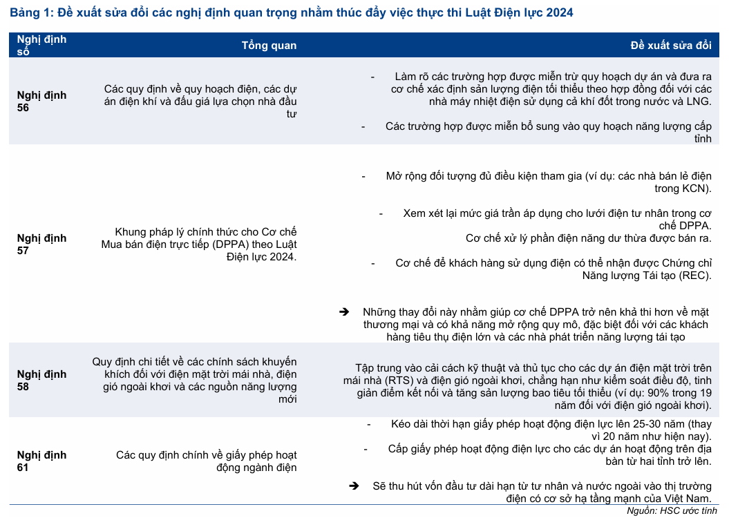 • Nghị quyết 70 và các nghị định sửa đổi (56, 57, 58, 61) giúp tháo gỡ rào cản pháp lý, cải thiện khả năng thu xếp tài chính, thúc đẩy đầu tư tư nhân và mở rộng thị trường điện, đặc biệt với điện gió ngoài khơi và cơ chế DPPA.