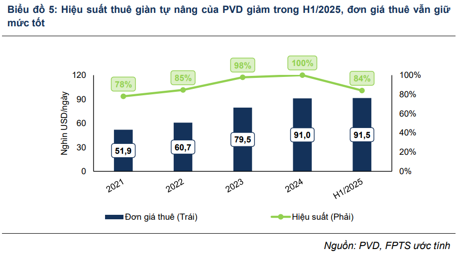 - Giá thuê giàn tăng: đơn giá thuê trung bình đạt 96,400 USD/ngày trong 2025 và tiếp tục tăng lên 101 nghìn USD/ngày trong 2026–2027.