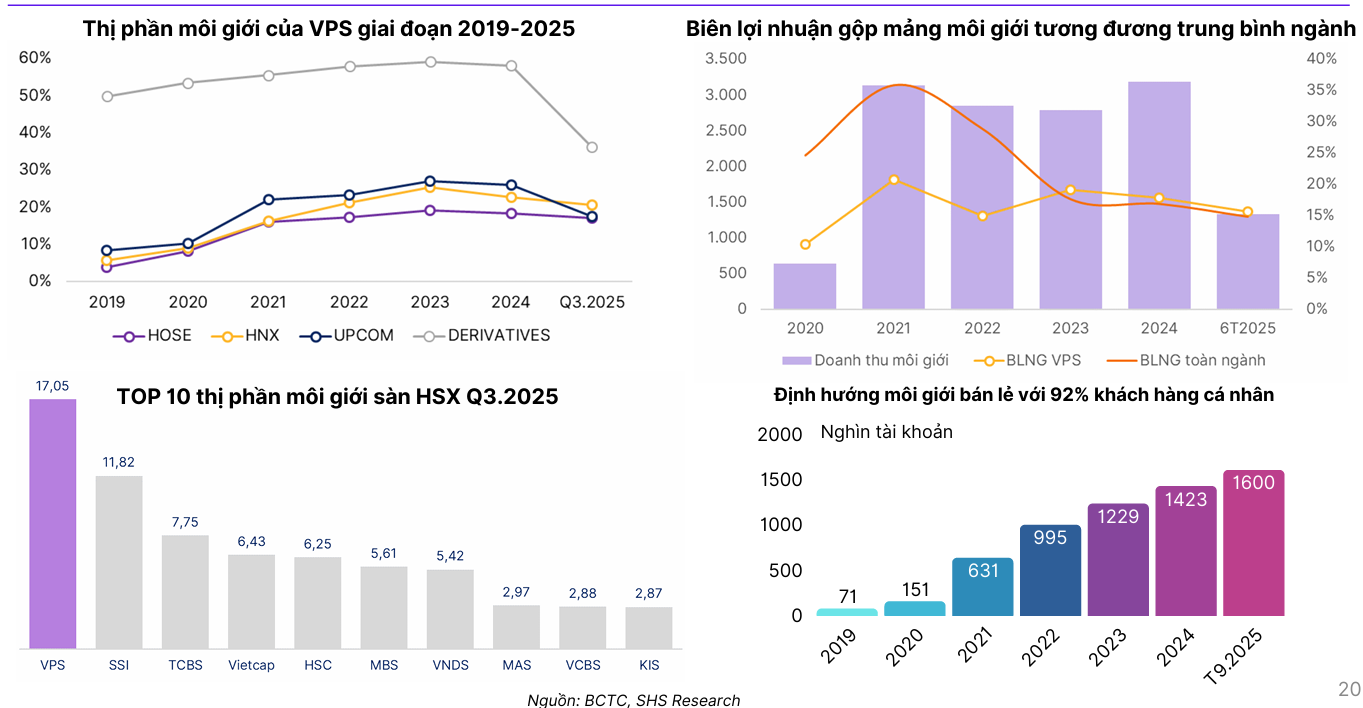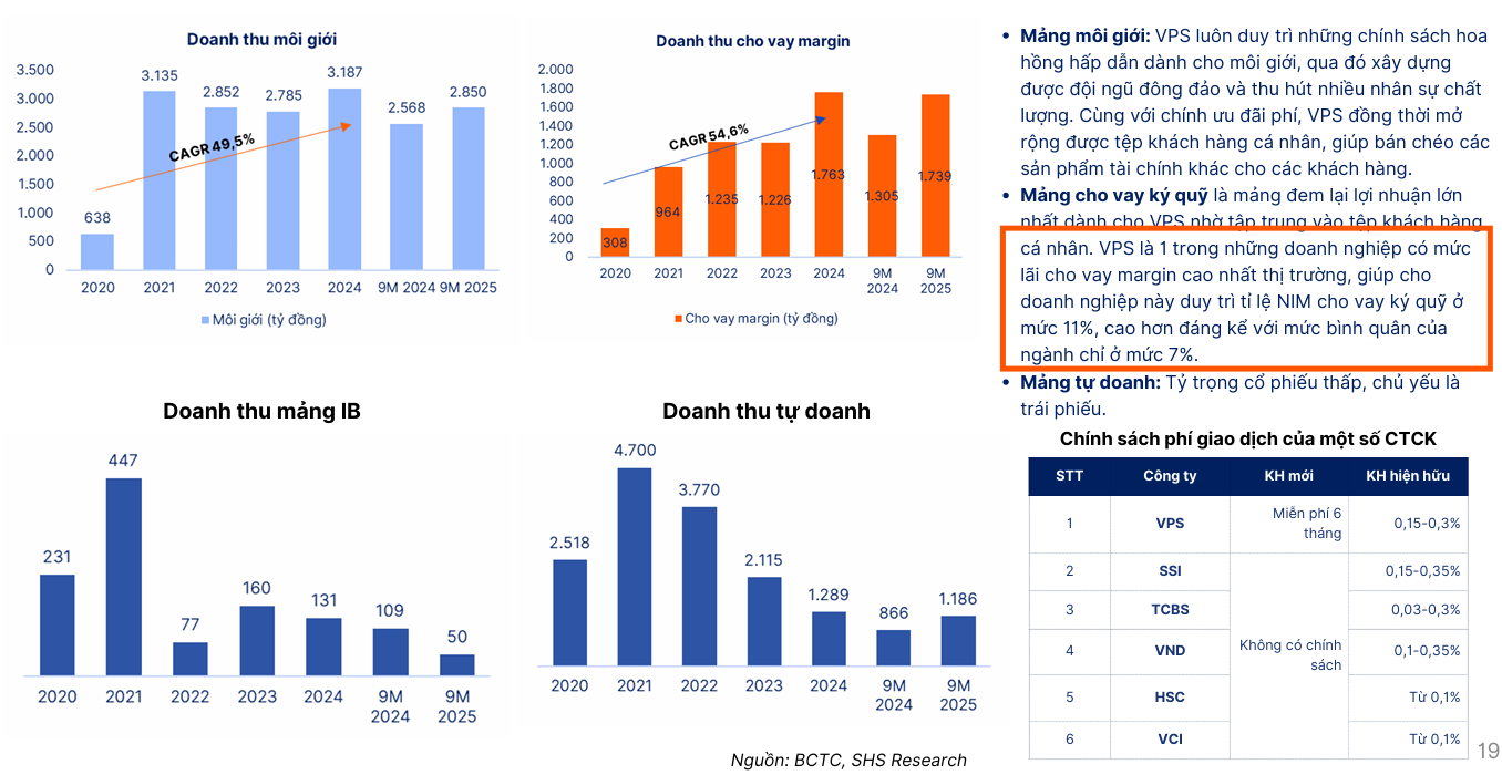 SHS đánh giá triển vọng kinh doanh của VPS sẽ được thúc đẩy mạnh mẽ nhờ các động lực nội tại và vĩ mô ngành. Về mặt nội tại, VPS đang đầu tư mạnh mẽ vào việc nâng cao năng lực công nghệ và mở rộng hệ thống, đặc biệt là sự chuẩn bị sẵn sàng để tận dụng hiệu quả hệ thống giao dịch KRX sắp được đưa vào vận hành. Việc nâng cao khả năng tiếp cận trực tuyến và phát triển nội dung số độc quyền sẽ giúp củng cố thêm vị thế trên thị trường.