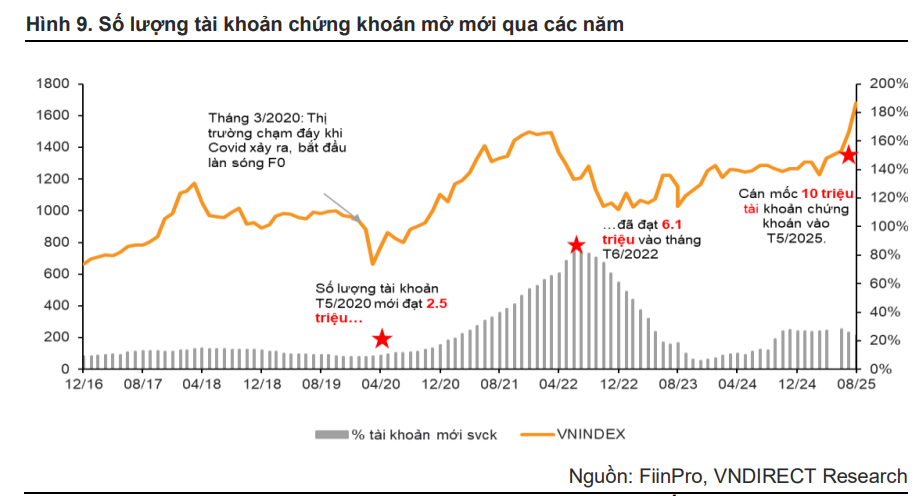 VNDirect nhận thấy có bảy động lực chính hội tụ thúc đẩy làn sóng này bùng nổ. Thứ nhất là môi trường kinh tế vĩ mô ổn định cùng với chính sách tiền tệ nới lỏng toàn cầu và trong nước, với mục tiêu tăng trưởng GDP trên 8% trong năm 2025 và 10% trong năm 2026, được củng cố bởi hoạt động đầu tư công mạnh mẽ.