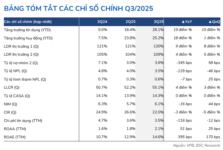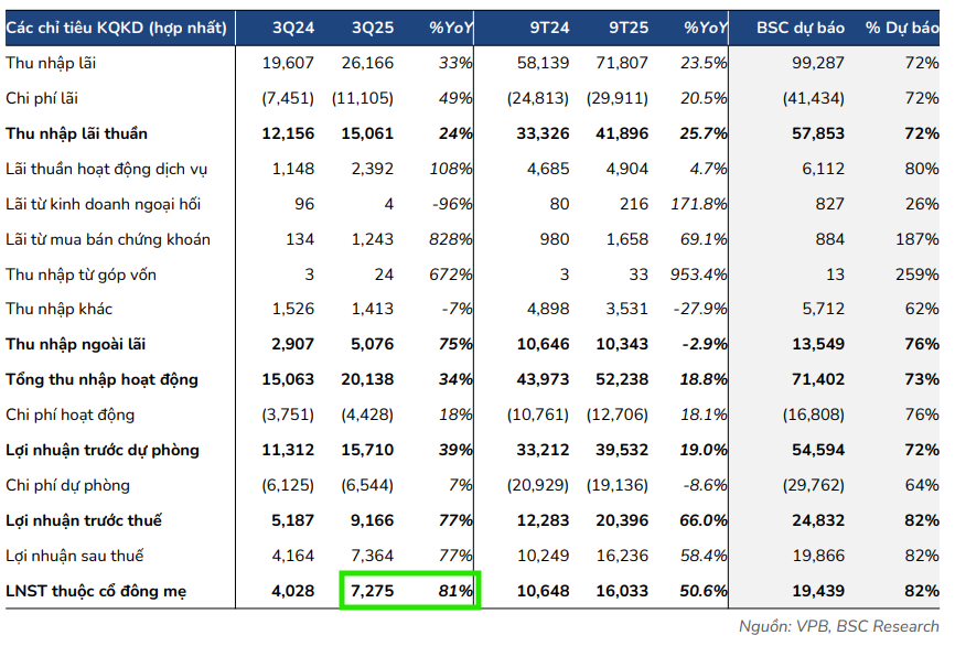 VPB: Lợi nhuận Quý 3/2025 vượt kỳ vọng, đà tăng trưởng tín dụng kỷ lục
