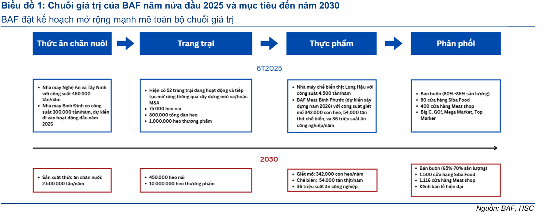 Công ty Cổ phần Nông nghiệp BAF Việt Nam đang ở vị thế thuận lợi để tận dụng quá trình hợp nhất ngành chăn nuôi heo tại Việt Nam, sau khi hoàn tất thành công quá trình tái cấu trúc chiến lược để trở thành một doanh nghiệp chăn nuôi quy mô lớn với chuỗi giá trị tích hợp theo chiều dọc hoàn chỉnh 3F “feed-farm-food” (thức ăn – trang trại – thực phẩm). Với cơ sở hạ tầng hiện đại và việc tuân thủ các quy định nghiêm ngặt trong Luật Chăn nuôi, BAF được kỳ vọng sẽ gia tăng mạnh mẽ thị phần.