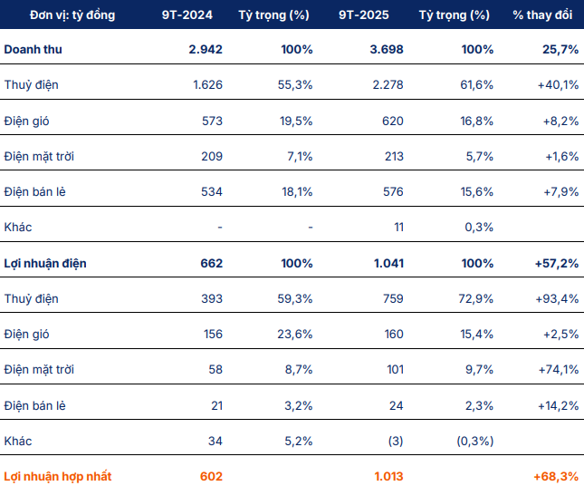 Kết quả kinh doanh Quý 3/2025: Bức tranh lợi nhuận vượt kỳ vọng nhờ mảng thủy điện