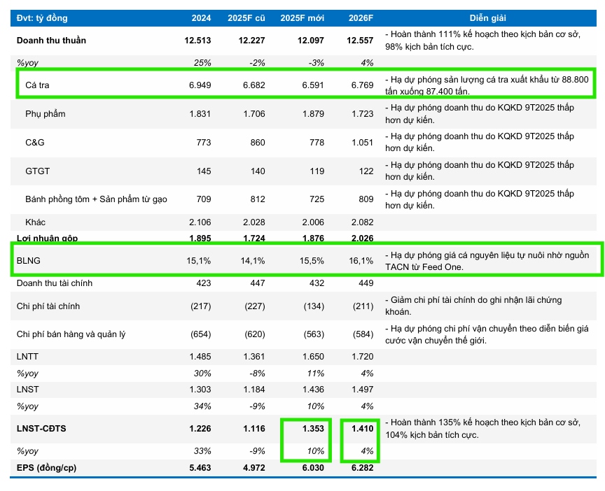 Ngược lại, BVSC (30.10.2025) lại đưa ra khuyến nghị Trung lập (Neutral) với mức giá mục tiêu thấp hơn là 67,000 đồng/cổ phiếu. Mặc dù BVSC tính toán tiềm năng tăng giá là 14.9%, nhưng họ vẫn thận trọng hơn trong bối cảnh cạnh tranh gia tăng và nhu cầu thị trường cá tra còn nhiều biến động khó lường.