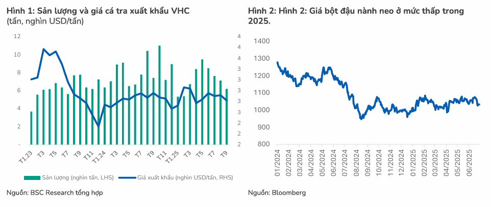 Mặc dù kết quả 9 tháng đầu năm 2025 (hoàn thành 77% DTT và 84% LNST-CĐTS dự phóng của BSC là 1,334 tỷ) vượt kỳ vọng do các yếu tố tài chính, BSC vẫn duy trì quan điểm thận trọng về triển vọng kinh doanh cốt lõi của VHC. BSC cho rằng sản lượng xuất khẩu của VHC sẽ khó cải thiện ngay trong quý 4 năm 2025, đặc biệt tại thị trường Mỹ, do nhu cầu tiêu thụ chậm và tồn kho vẫn duy trì ở mức cao. Mùa cao điểm nhập khẩu cá tra cũng đã qua, khiến động lực nhập khẩu mới thấp. BSC dự báo tín hiệu hồi phục thực sự sẽ chỉ rõ rệt vào nửa cuối năm 2026.