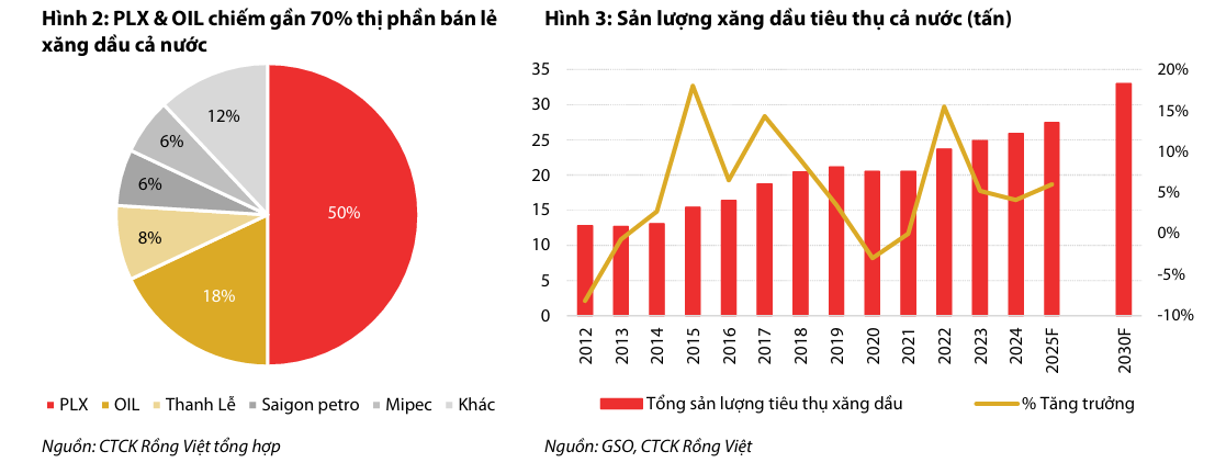 - Lợi thế vị thế dẫn đầu: Với thị phần khoảng 45.4% và mạng lưới phân phối rộng khắp, PLX được hưởng lợi rõ rệt từ quy mô, năng lực logistics và vị thế trụ cột đảm bảo an ninh năng lượng quốc gia.