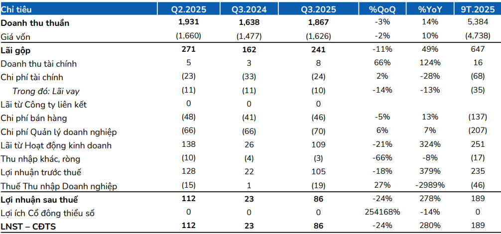 Kết quả kinh doanh Quý 3/2025: Sản lượng phục hồi ấn tượng, biên lợi nhuận cải thiện rõ rệt