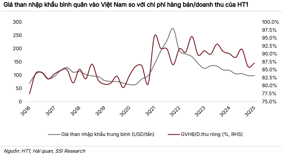 Theo SSI Research, kết quả tích cực của HT1 trong quý 3 chủ yếu nhờ chi phí than giảm mạnh và nhu cầu tiêu thụ xi măng tại khu vực phía Nam phục hồi rõ rệt. Các dự án hạ tầng trọng điểm như Vành đai 3 TP.HCM, cao tốc Biên Hòa – Vũng Tàu, sân bay Long Thành đang được đẩy nhanh tiến độ, giúp mảng xi măng dân dụng và hạ tầng cùng lúc tăng trưởng trở lại.