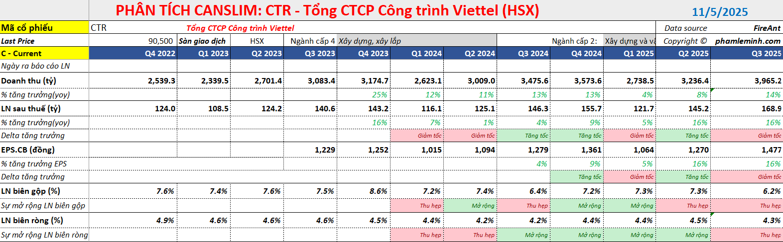 Trước thời điểm công bố báo cáo quý 3, HSC (29.9.2025) duy trì dự báo và khuyến nghị Tăng tỷ trọng đối với cổ phiếu CTR với giá mục tiêu 104,800 đồng, tương ứng với tiềm năng tăng giá 15%. Cho năm 2025, lợi nhuận thuần được dự báo đạt 596 tỷ đồng (tăng trưởng 11%) và EBITDA đạt 1,208 tỷ đồng (tăng trưởng 20%).