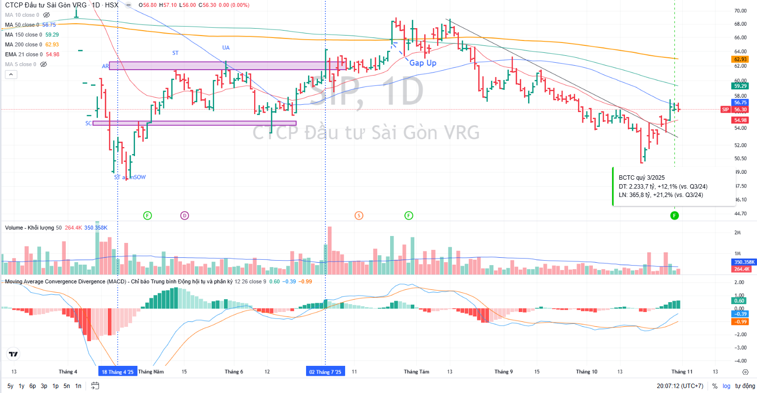 Sau khi kiểm tra lại đáy tháng 4.2025, SIP đang cố gắng breakout đường trendline và hướng về MA50 ngày. Cần rất nhiều thời gian để cho thấy dòng tiền trở lại với nhóm cổ phiếu bất động sản KCN.