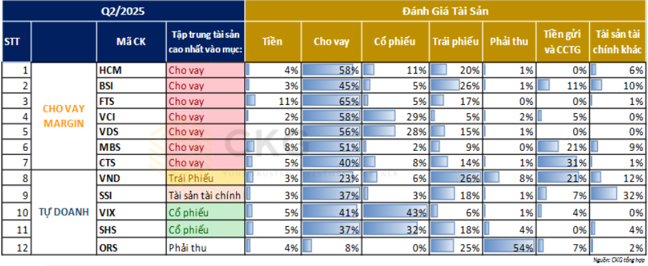 Các công ty thiên về tự doanh như VIX, SSI, SHS, VND ghi nhận mức tăng trưởng vượt trội, trong khi nhóm cho vay margin như HCM, BSI, FTS, VCI, MBS tăng trưởng chậm hơn, thậm chí thua lỗ ở mảng đầu tư cổ phiếu.