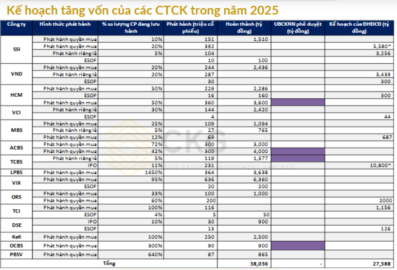 Tính đến giữa năm 2025, các công ty chứng khoán đã huy động tổng cộng 38 nghìn tỷ đồng thông qua phát hành cổ phiếu và trái phiếu, và dự kiến phát hành thêm 27.4 nghìn tỷ đồng trong giai đoạn còn lại của năm.