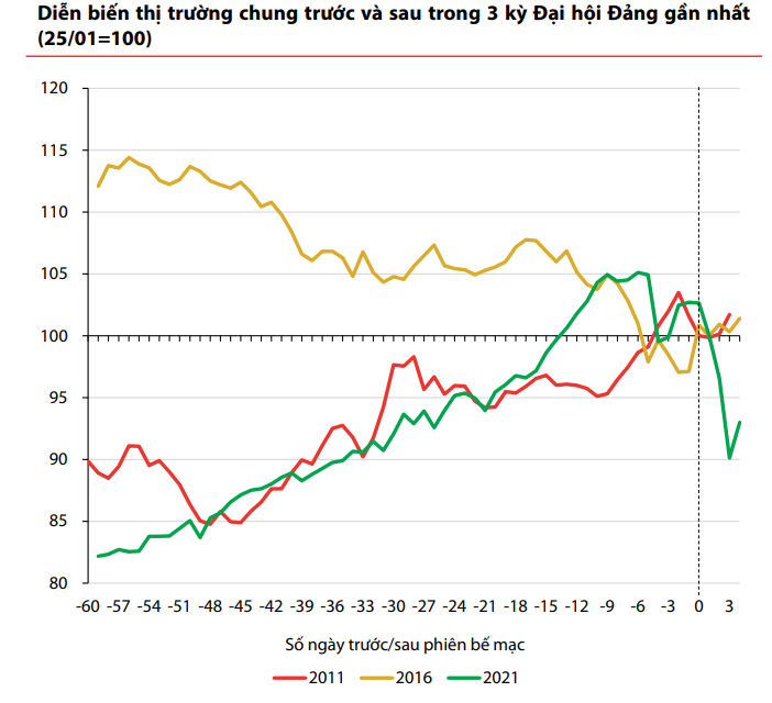Trong nước, tâm điểm chú ý của thị trường hướng đến Đại hội Đảng toàn quốc lần thứ XIV vào tháng 1/2026, dù thống kê lịch sử cho thấy biến động thị trường chịu tác động lớn từ bối cảnh vĩ mô và lợi nhuận doanh nghiệp hơn là yếu tố chính trị. Elibook Team không đồng ý với quan điểm của VDSC và có kết luận nghiên cứu riêng về khả năng thị trường chứng khoán Việt Nam thường lập đỉnh hoặc đáy chu kỳ 1 năm trở lên trong biên độ +/-2 tháng quanh đại hội đảng.