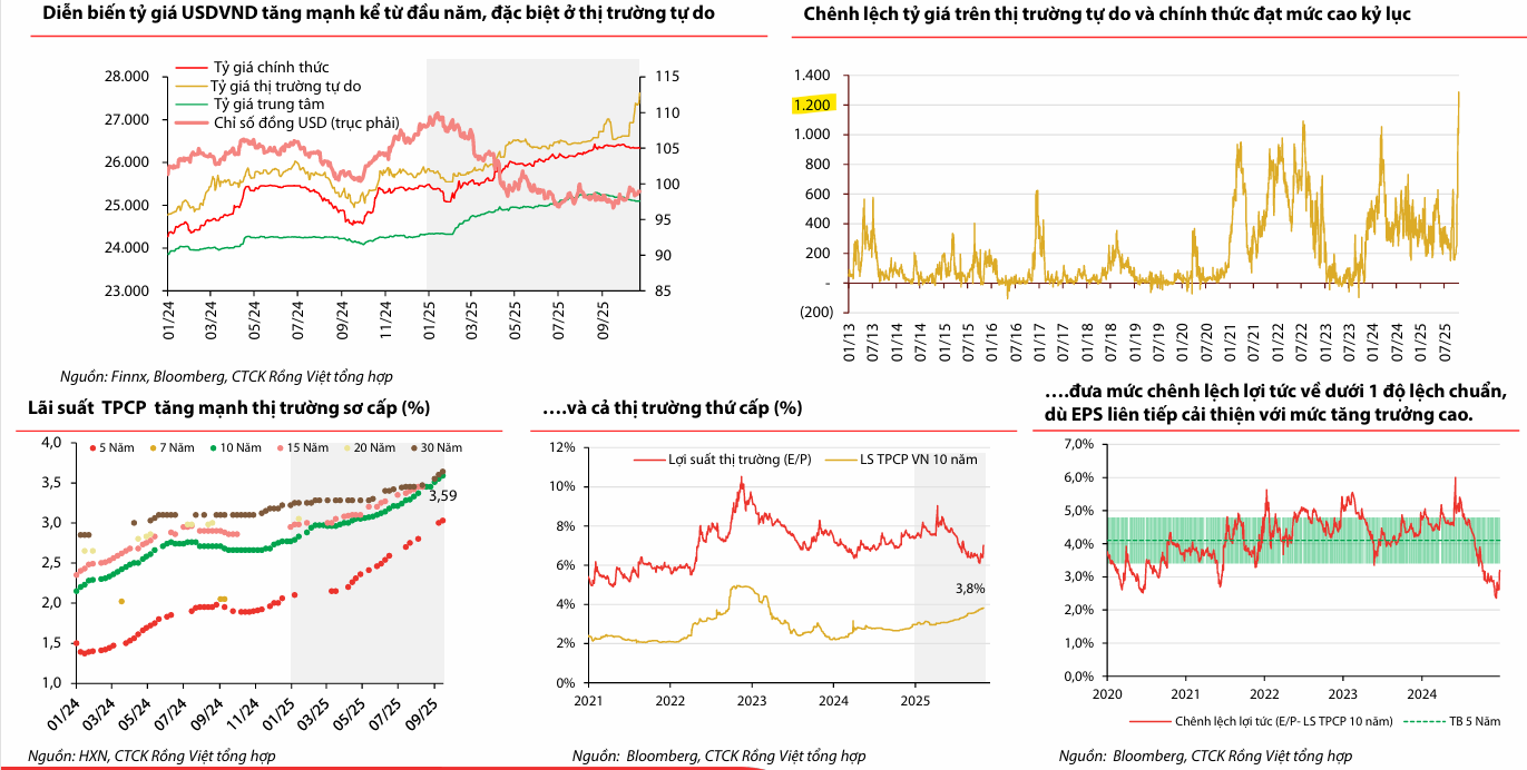Áp lực lên chi phí vốn vẫn hiện hữu do chênh lệch lớn giữa tỷ giá tự do và chính thức, bên cạnh việc lợi suất trái phiếu Chính phủ 10 năm đã tăng thêm khoảng 30 điểm cơ bản so với đầu năm. Về mặt kỹ thuật, dư nợ margin của toàn thị trường đang ở mức cao kỷ lục, khiến các nhịp điều chỉnh có thể diễn ra mạnh hơn khi xuất hiện “cơn gió ngược” ngắn hạn. Tuy nhiên, VDSC cho rằng rủi ro hệ thống chưa đáng ngại khi đòn bẩy trung bình đã được hạ nhiệt, dòng tiền mới tiếp tục gia nhập và các công ty chứng khoán vẫn còn dư địa cho vay.